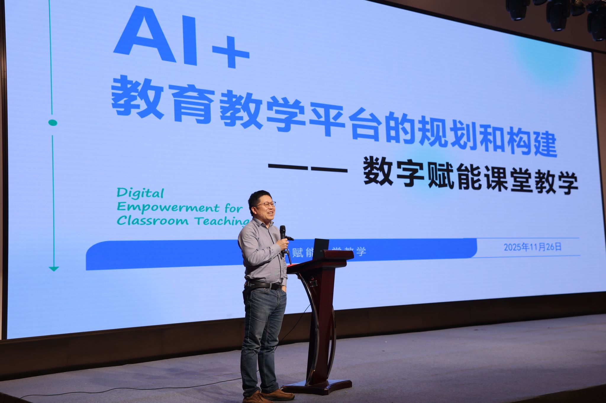 莫路锋重点介绍了我校“天目云”智慧教育平台的AI整体赋能实践。他系统阐述了该平台从平台规划、功能设计到技术落地与场景应用的全链条构建路径。报告分享了“天目云”平台在支持混合式教学、实现个性化学习、推进教学管理智能化等方面的创新成效,展示了我校以“数据驱动、整体智治”理念破解数据孤岛、构建一体化智能服务体系的具体经验,为区域高等教育数字化转型提供了可借鉴的实践方案。